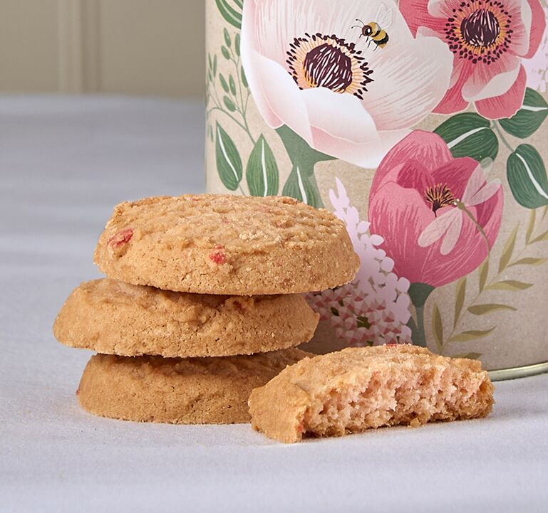 Inspired by the boundless creativity and captivating beauty of nature’s flora and fauna. Delight in the comforting taste of Sweet Cherry Bakewell, beautifully presented in a charming floral botanical tube. These all butter biscuits are expertly baked to perfection, combining the richness of creamy butter with the sweet, tangy flavour of cherries. A delightful treat to enjoy with tea or to gift to someone special.