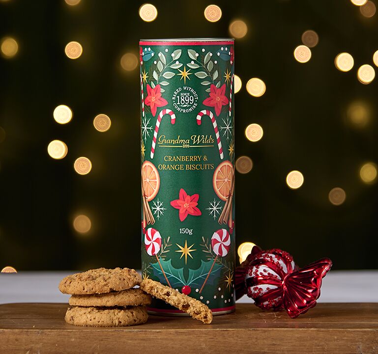 This beautifully festive tube is adorned with seasonal charm. Nestled inside is a delightful selection of Cranberry & Orange Biscuits—a harmonious blend of tangy cranberries and zesty orange, baked to golden perfection. This 150g tube captures the essence of the season, with its inviting design. Whether shared with loved ones or enjoyed as a treat, this charming tube makes a thoughtful gift or a delicious festive indulgence.